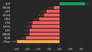 The CoinDesk 20 index dropped 2.0% as almost all of its constituents declined, with Internet Computer (ICP) being the sole gainer.