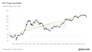El precio de Bitcoin está muy por debajo del modelo de ley de potencias, lo que plantea dudas sobre la reversión a la media o la invalidez del modelo.