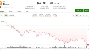 Bitcoin Price Falls Below $70,000 After Crashing 21% This Week