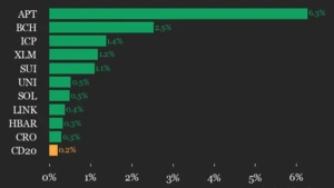The CoinDesk 20 index rose 0.2%, led by Aptos (APT) with a 6.3% gain and Bitcoin Cash.