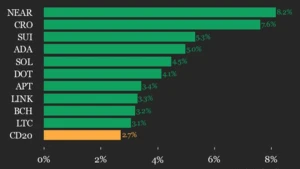 CoinDesk 20 表现更新:NEAR Protocol (NEAR) 上涨 8.2%,指数上升