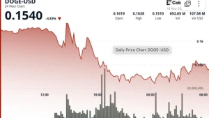 Dogecoin 跌破多年上升趋势线,在机构抛售压力下测试关键的 $0.1520 支撑位。