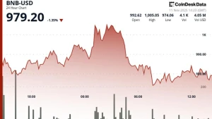 BNB cayó por debajo de los $1,000 debido a la presión vendedora, indicando una tendencia bajista con soporte cerca de $972.85.